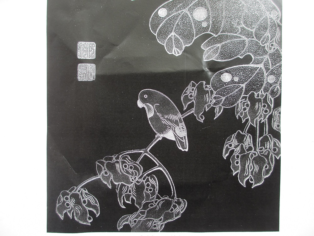 今回、若冲の版画、「青桐に砂糖鳥」をコピーして大下図として使用します。