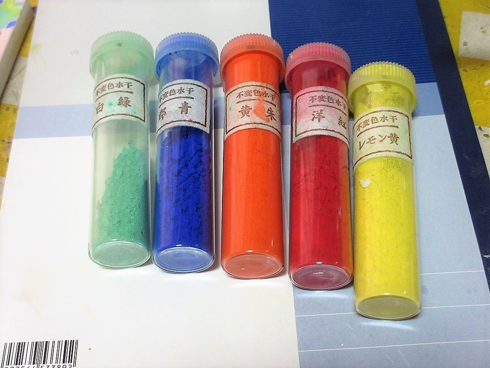 ちなみに、みなさん、日本画絵具は時間がたつと下に沈みます。