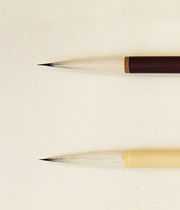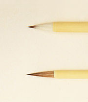 付立筆の一種。オロンピー(パーミー)と呼ばれるイタチ科の動物の毛を用いた筆。毛に強い弾力があり、の弾力が良く、大変力強い書き味が魅力です。また、独特のカスレ具合を引き出せます。書道用としてお使いいただくことも多い筆です。